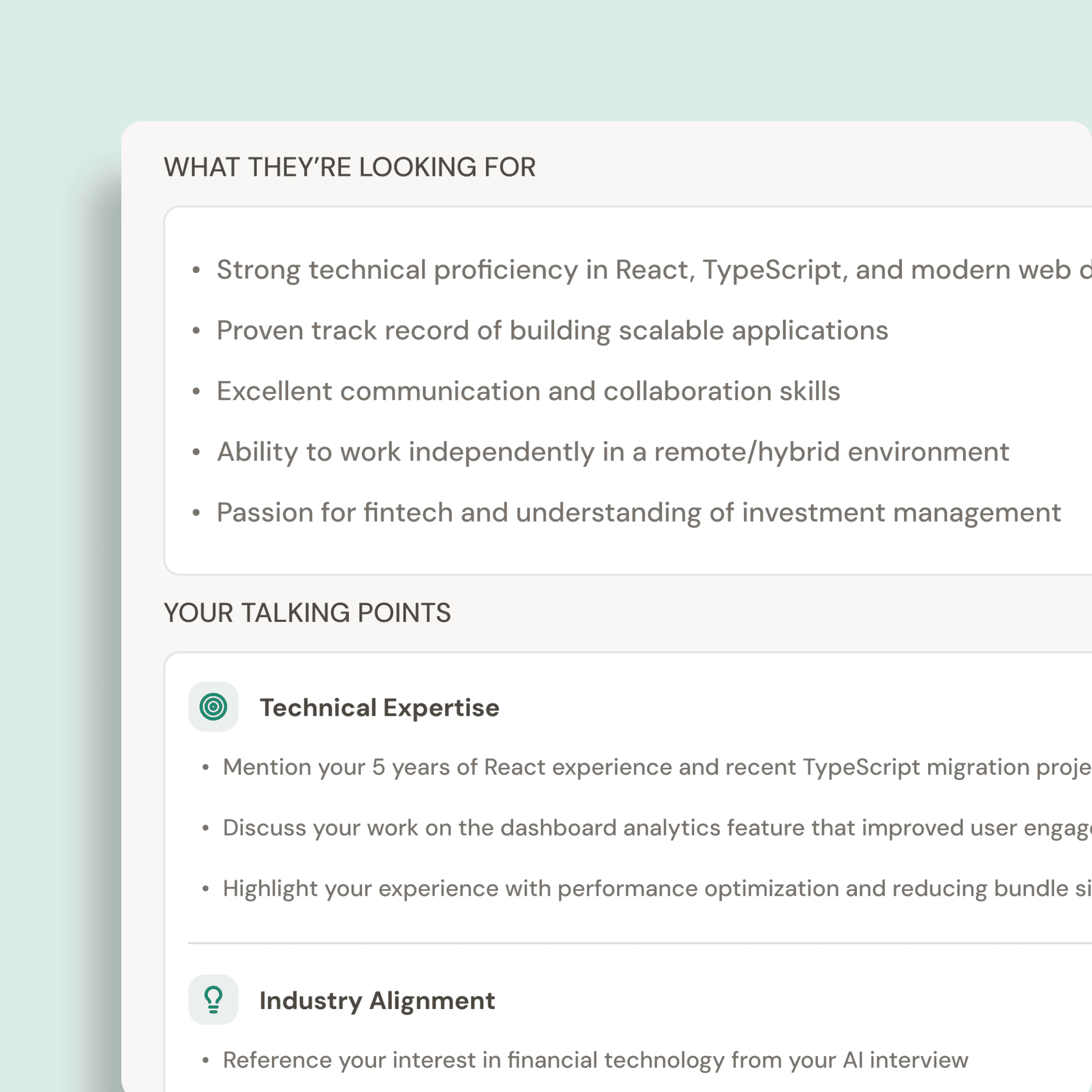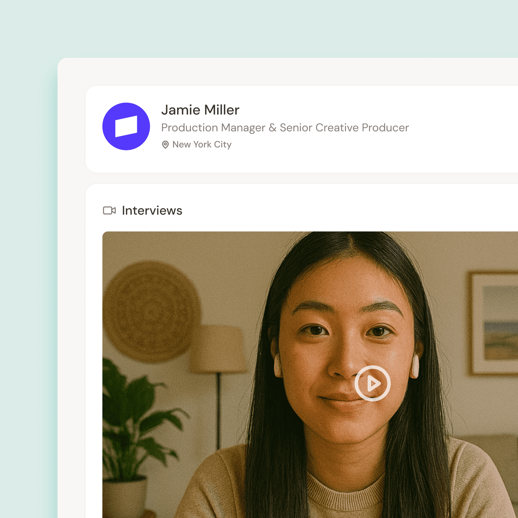 Back your outreach with a living professional story, a guided interview they can watch, and an AI-optimized resume ready for any ATS.